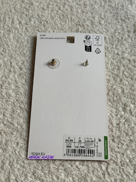 گوشواره زنانه سنگدار با آبکاری طلا از برند معتبر TOSH آلمان، ترکیبی از سبک مدرن و اصالت اروپایی را در خود دارد.
