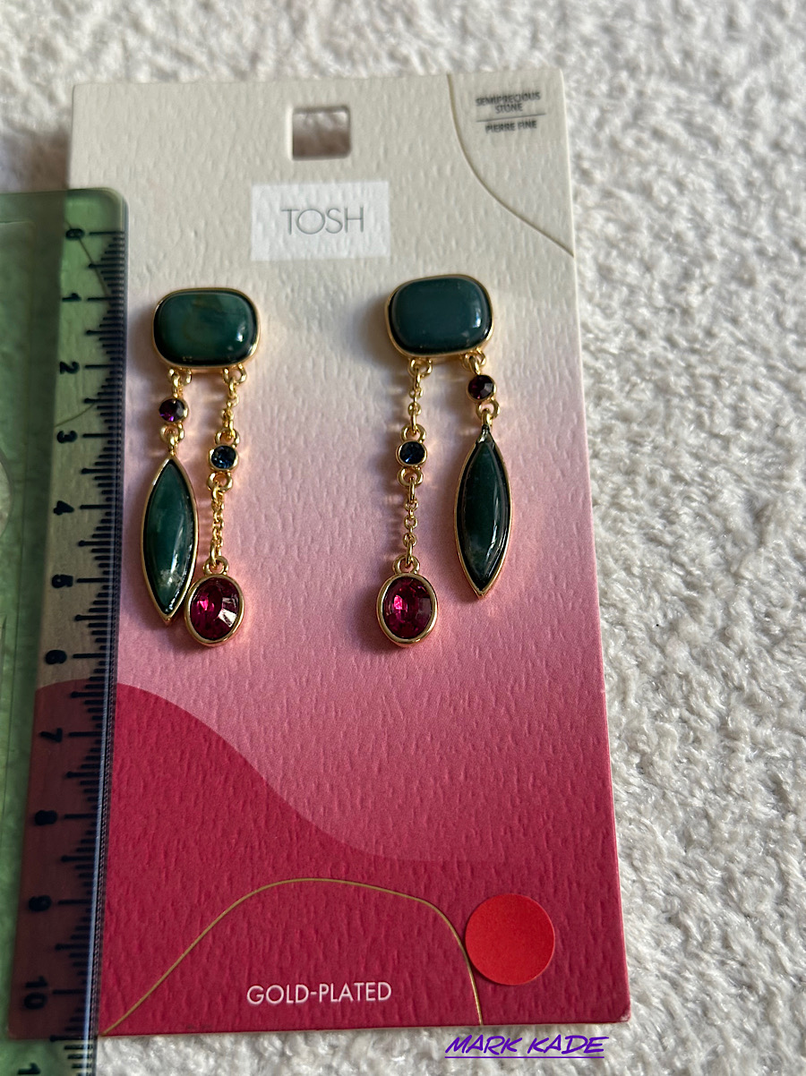 گوشواره زنانه سنگدار با آبکاری طلا از برند معتبر TOSH آلمان، ترکیبی از سبک مدرن و اصالت اروپایی را در خود دارد.
