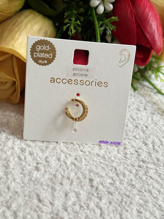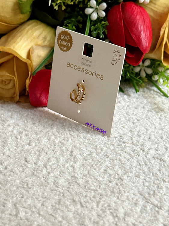 پیرسینگ گوش زنانه برند اکسسوری آلمان با طراحی ظریف و نگین زیرکونیا، جلوهای درخشان به استایل روزمره و رسمی شما میبخشد. آبکاری طلا روی سطح فلز، حس لوکس ملایمی ایجاد میکند و در ترکیب با سنگ زیرکونیا، ظرافتی چشمنواز ارائه میدهد.