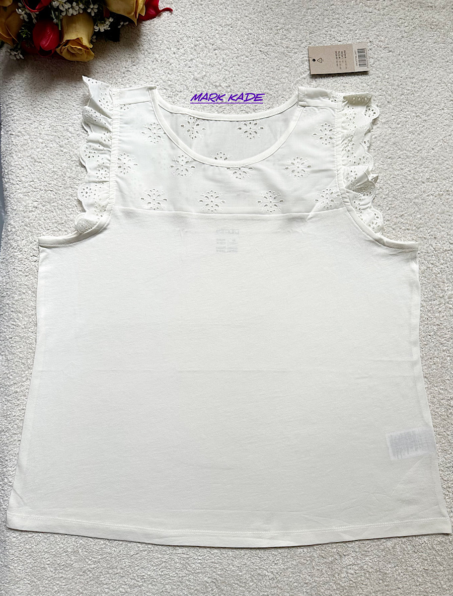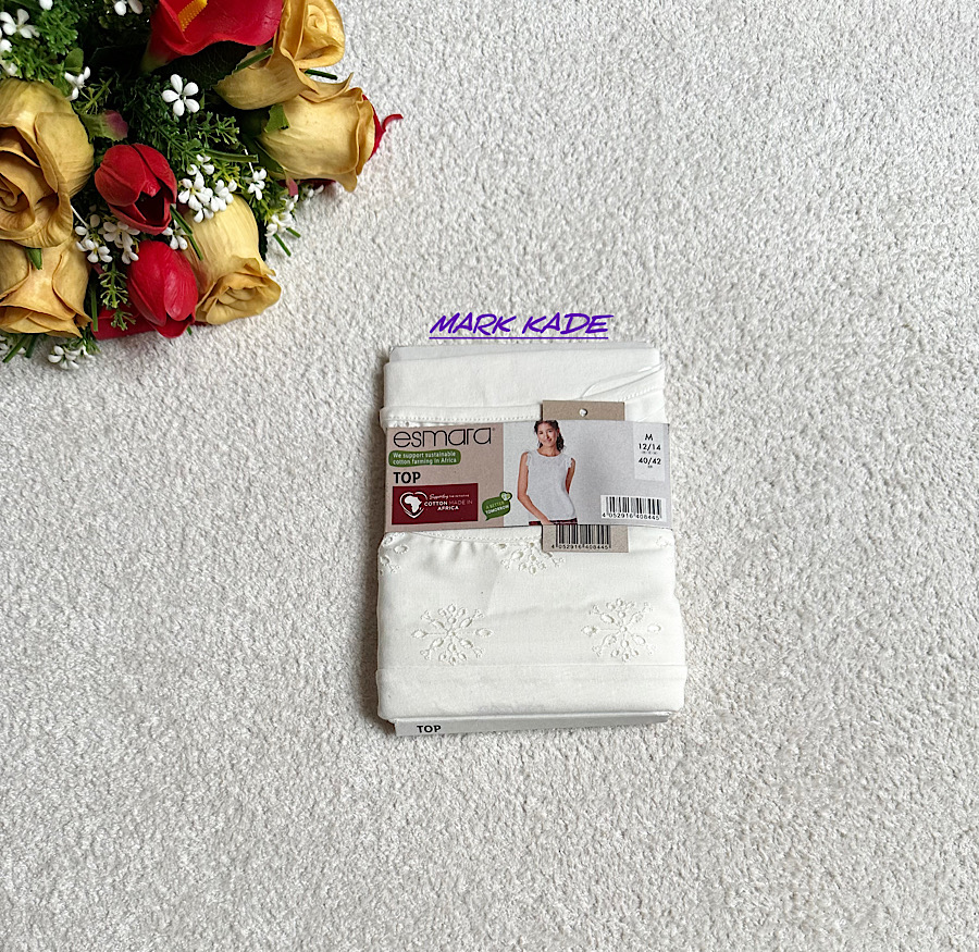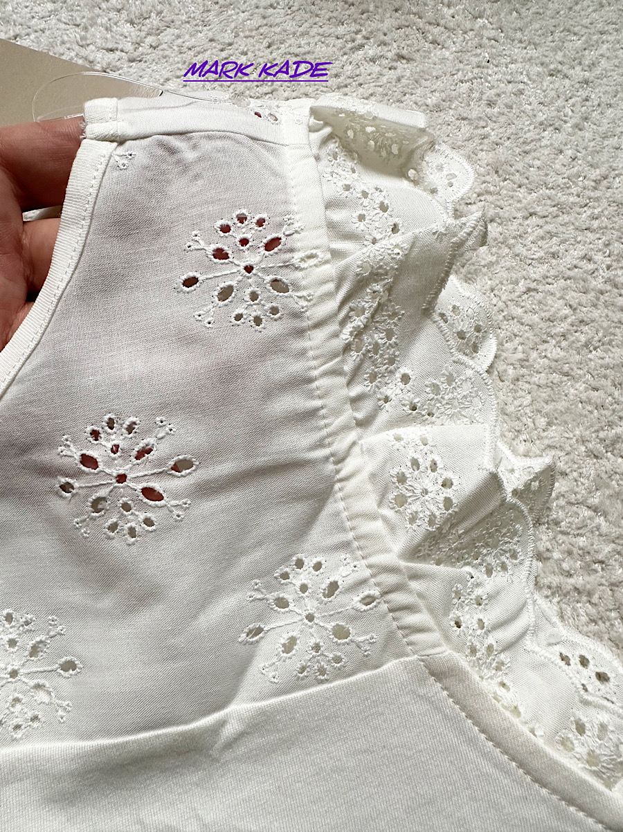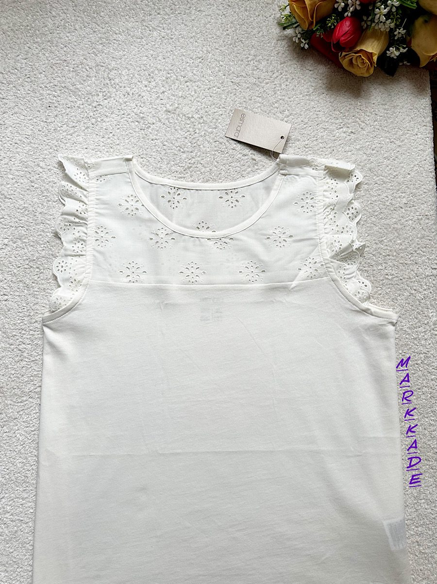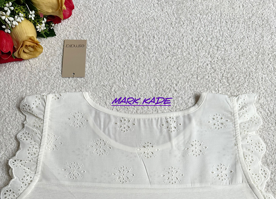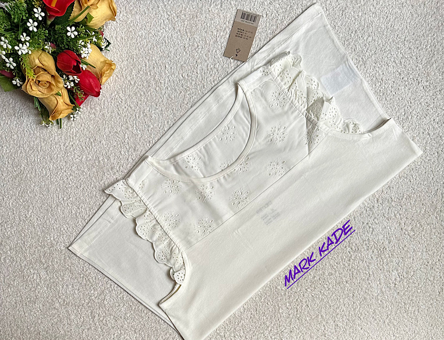 تیشرت زنانه سفید نخی اسمارا آلمان – سوزندوزی ظریف روی سینه و آستین